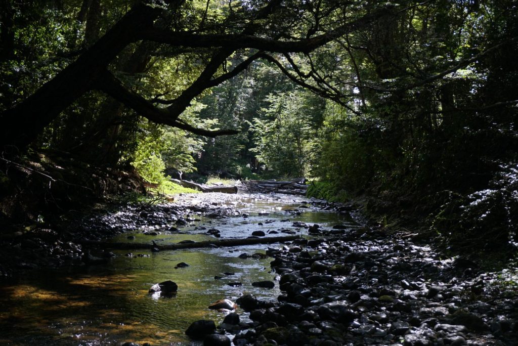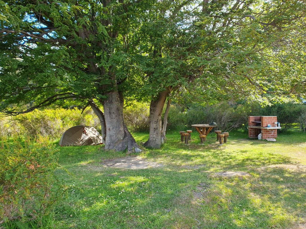 Zum Schluss zieht sich der Weg etwas, aber gegen 15 Uhr komme ich endlich am Campingplatz an. Der Betreiber, Manuel, ist super nett. Er bietet mir später am Nachmittag ein Bier an und er erzählt mir dabei von der Gegend, seiner Reise in die Antarktis, dem Wetter und den Chilenen. Er wohnt auch im Winter in seiner Cabaña, wenn es hier empfindliche -30 Grad und einen Meter Schnee haben kann. Man merkt ihm an, dass er sich dort wohl fühlt und dass ihm die Arbeit mit den Gästen Spaß macht. Täglich Holz hacken steht für ihn auf dem Programm, denn es ist – auch im Sommer – notwendig zu heizen. Zwar sind es, wie jetzt im Sommer, bei Sonne auch mal 17 Grad, aber nachts geht es bis runter an den Gefrierpunkt. Meine Campingausstattung erweist sich als völlig ausreichend für diese Temperaturen – ich schlafe sehr gut. Fließend Wasser gibt es nur vom Río San Juan, der direkt am Campingplatz vorbeifließt. Das Wasser ist trotz Aufbereitung mit Chlor nicht trinkbar und leicht braun. Manuel erklärt mir, dass es aufgrund der Viehhaltung nicht trinkbar ist. Spätestens die Farbe hätte mich davon abgehalten. Meine Filterflasche hätte hier gute Dienste geleistet, aber Manuel stellt mir Trinkwasserkanister bereit.
